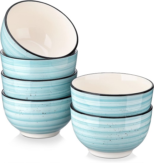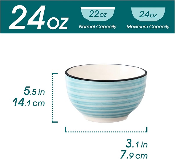 - 【Lead Free Stoneware Material】The bowls are made of blended and well-selected stoneware which is not too thick and for sure dishwasher and microwave safe. It can stand up to the heat from the microwave,retains heat more evenly than other types of pottery and also could bear cold from frezzer.